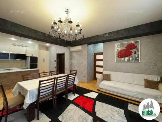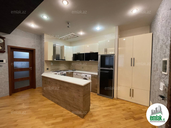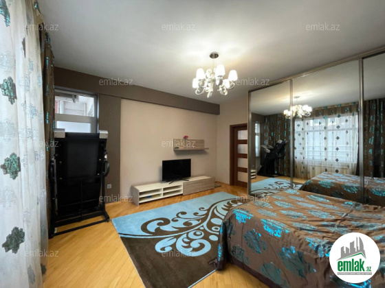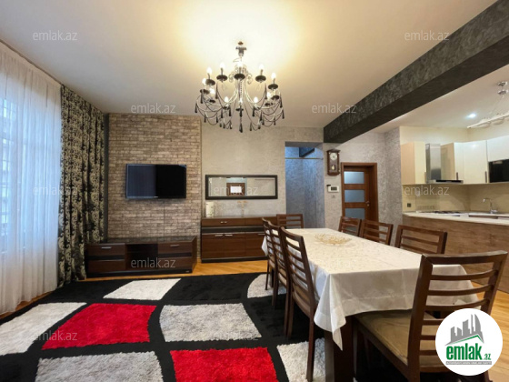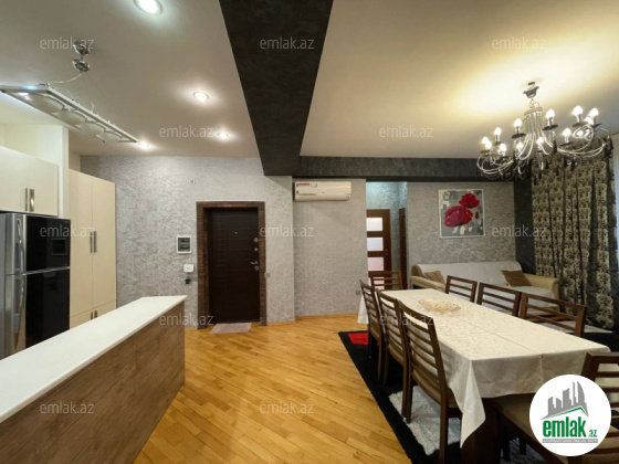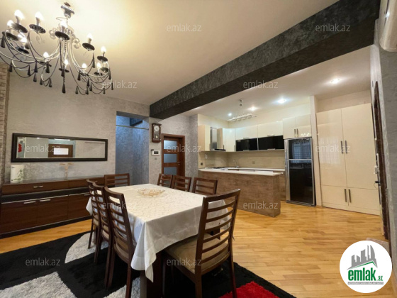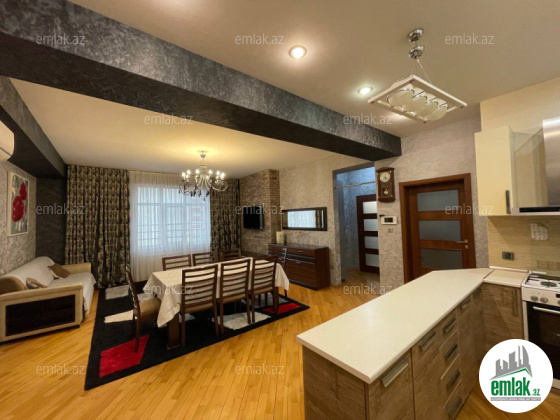 Əla təmirli ümumi səhəsi 122 kv.m. mənzil 4 otaga düzəlib(mətbəx-studiya və 3 yataq otagi) 2 sanitar qovşagi,istilik kombi,qaz su işiq daimidir.quraştirilmiş mətbəx mebel.