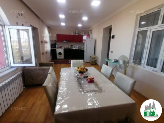 Umumi heyet yani sahesi 4 sot yarim.1 ci mertebede 3 otaq .2 ci mertebede 5 otaq . umumilikde 8 otaq. Demir darbaza, masin heyete girir. Qaz,su,isiq daimidir. Telefon, ayrica kanalizasiya sitemi var. Kombi sitemi ile tehciz olunmusdur. Ev iki qat dasla horulub. Yaxinlida Barca, mekteb, market. Esas yolun uzerinde yerlesir. Ev kohne Komsamol dairesinin yaxinliqinda yerlesir.Gozel menzeye acilan heyet.tesetufat ucun munbut torpaq. Semimi ve mehriban qonsular))