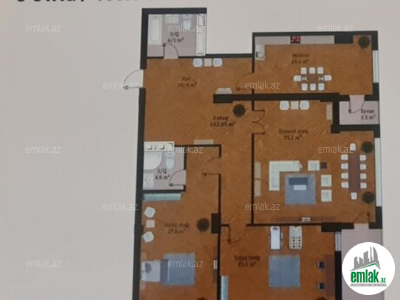 Satılır 3 otaqlı 164 m2 yeni tikili Elmlər Akademiyası m.