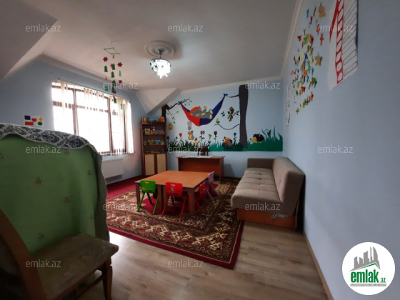 Binə Atçılıq mərkəzində hazır biznes və ev kimi,8 sot ərazidə tikilmiş 2 mərtəbə və böyük zirzəmisi olan ümumi sahəsi 406 kv olan 5 otaqlı villa satışdadır.Villa hal-hazırda aylıq kirayəsi 1500 Azn olan bağça kimi fəaliyyət göstərir.Evin qarşısında uşaqların əylənməsi üçün atraksiyonlar və böyük oyun meydançası,yaşıllıq, evin arxasında isə 1 sot ərazisi olan yaşıllıq yerləşir.Evin çox böyük zirzəmisi vardır.1 ci və 2 ci mərtəbə arası monolit betondur.1 ci mərtəbədə böyük zal,1 otaq,sanuzel və böyük(25 kv) mətbəx yerləşir.Mətbəxə giriş qapısı həm evin içərisinnən,həm də evin çölünnəndir.2 ci mərtəbədə isə zal,4 otaq və təmirsiz sanuzel yerləşir.Laminat döşəmə,mərmər pilləkan.İstilik sistemi kombidir.Qaz,su,işıq daimidir.Şirkətin xidmət haqqi əmlakın 2%-i təşkil edir(xidmət haqqına alqı satqı prosesi zamanı bütün hüquqi xidmətlər daxildir).BEH VERİLƏN ZAMAN BEH MÜQAVİLƏSİ BAĞLANIR.Karvan Əmlak şirkəti Bakı şəhəri üzrə həm nəğd, həm də ipoteka ilə mənzillərin satışını həyata keçirir. Əlavə məlumat üçün əlaqə saxlaya bilərsiz.