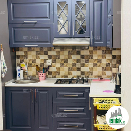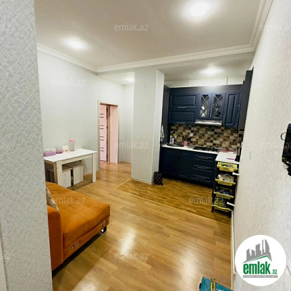 yerləşir şəkildə görünən bütün əşyalarla birlikdə divan, stol, stul mətbəx mebeli yataq dəsti kandisoner televizor və s ev 1 yataq otağı və studiya mətbəxdən ibarətdir