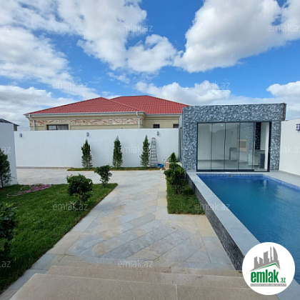 Həyətində filterli hovuzu, yay - qış mətbəxi, manqalı, dekorativ ağacları və maşın saxlamaq üçün yer var.