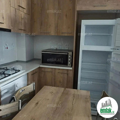 Ev elmlər meteosuna 5 deqiqelik məsafədə yerlərşir. Evdə hər cür əşya var qab qacağ xaric. İsitmə kombi balkondadir. Lift var