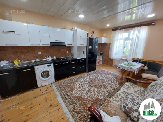 Ev kürslü, divarları 2daş,3 otaqlıdı, kalidoru 16 kvadrat metirdi, onuda 3 otaqdan əlavə kim istəsə otaq kimi istifadə edə bilər.Bütün otaqların qapıları kalidora açılır. İsitmə kombi sistemidi, mətbəx və hamamda istipo...