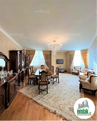Ümumi sahəsi 183 kv metr (çıxarışla 170 kv) olan 4 otaql əla təmirli mənzil satılır. Mənzilin 2 sanuzeli və 2 eyvanı və çamaşırxana otağı var.