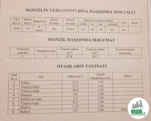 СРОЧНО!!! м.Мемар Аджеми, на кругу 3 мкр-на, поблизости с маркетом "SPAR" и клиникой "PANAZEYA", 5/10, 98 кв, продается полноценная 3-х комнатная квартира с хорошим ремонтом и прекрасной аурой. Квартира продается со всей мебелью и оборудованием. Свет, газ, вода постоянно. Отопительная система - комби. Интернет, "wi-fi", кабельное телевидение есть. В здании лифт функционирует, имеется свой двор, а также поблизости развитая инфраструктура (школа, садик, мед.учреждение, маркеты, 3 станции метро, автобусная остановка и т.д.). Подходит для ипотеки. 1% за услуги компании.