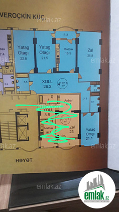 Mənzil yarım yelçəkən olub çox ideal planlamaya sahibdir.
