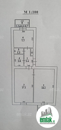 Elmlər Akademiyası ilə üzbəüz, stalinka mənzil yelçəkəndir, 2 balkon, sirket haqqi 1% teskil edecey.
