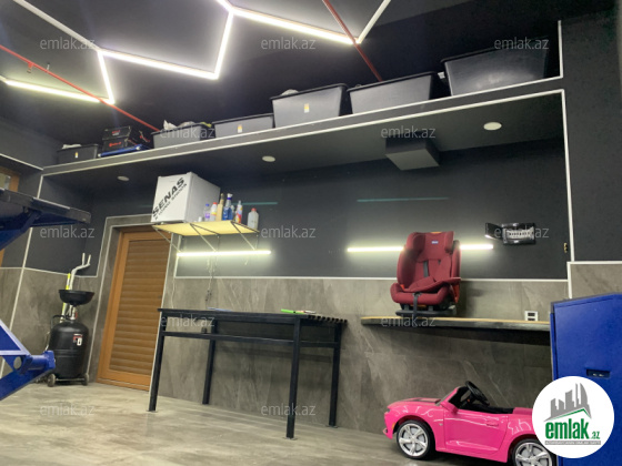 Obyektin içində 3 tonluq qayçı tipli podyomnik, Kondisioner, Su drenaj nasosu, iş masası, havalandırma sistemi, su xətti və su sayğacı və.s mövcuddur. Yüksək keyfiyyətli elektrik və işiqlandırma sistemi ilə təchiz olunmuş, yer və divarlar bahalı kereamo-qranitlə üzlənmişdir. Obyektin pultla idarə olunan 5m enində jalyüz qapısı və əlavə giriş qapısı vardır.