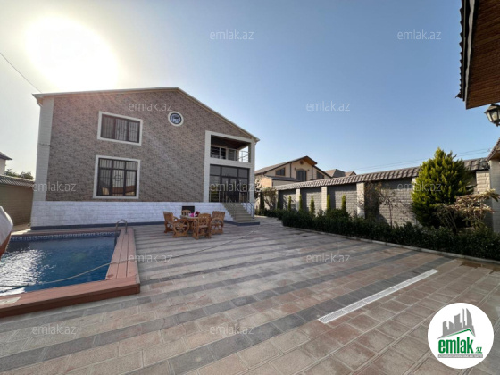 Həyətində filterli hovuzu, yay-qış mətbəxi, manqalı, söhbətgahı, dekorativ ağacları mövcuddur.