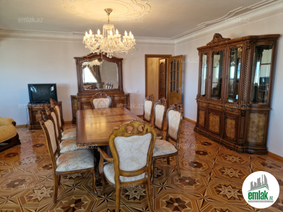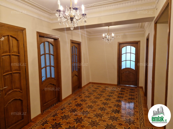 Mənzil binanın 5-ci və 6-cı mərtəbələrini əhatə edir, ümumi sahəsi 200 kv.m, 5 otaqlıdır.