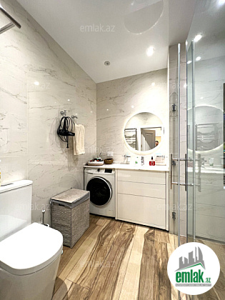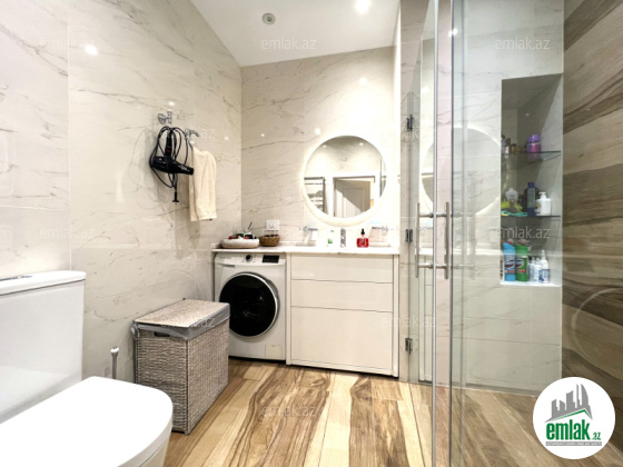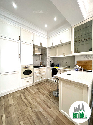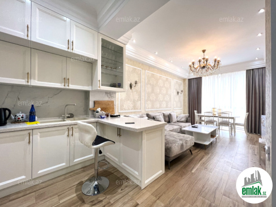 Насиминский район, проспект Азадлыг, 20-этажный жилой комплекс «Мелисса Азадлыг», состоящий из 2 блоков, общая площадь 60 квадратных метров, 1 санузел, 1 открытый балкон, система отопления комби, теплый пол. Квартира расположена на 18 этаже и имеет прекрасный вид на город. Установлена кухонная мебель с оборудованием Kuppersberg. При ремонте использованы обои «Casamia», элитные стройматериалы европейского производства премиум-класса.