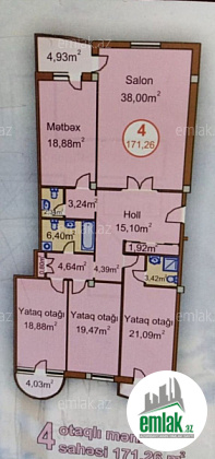 Mənzil yarım yelçəkən olub çox ideal planlamaya sahibdir.