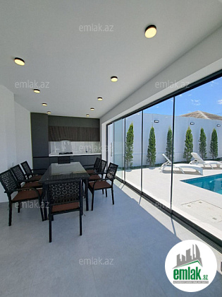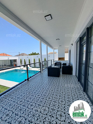 Həyətində filterli hovuzu, manqalı, yay-qış mətbəxi, verandası, geniş yaşıllıq ərazisi və dekorativ ağacları mövcuddur.