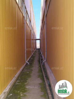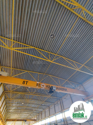 Satılır 3000 kvadrat metr istehsalat (hündürlüyü 8 metr) və ofis binaları. Əlavə 5000 kvadrat metr həyət sahəsi var. İstehsalat binaları iki qat izolyasiyalı şəkildə inşa edilmişdir. 250 kV-lıq transformator, qaz, su, optik internet, isitmə sistemi, yanğın siqnalizasiyası və video müşahidə sistemi var. Sexlərdə körpülü kranlar var. Həyətimizdə 70 tonluq su baseyni var. 6 ədəd s/q var. Ofislərdə kondisionerlər var. Bütün ərazi armatur-betonla döşənib.