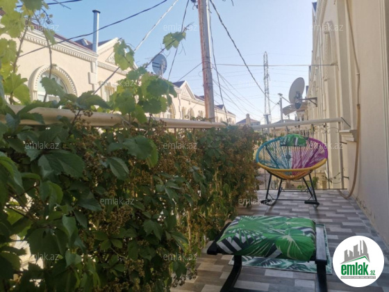 Duplex, 4 otağ, 2 hamam-tualet, pilliəkənin altında köməkçi otaq, böyük balkon, kicik həyət.
