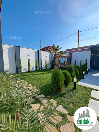 Həyətində filterli hovuzu, verandası, maşın saxlamaq üçün sahəsi, yaşıllıq ərazisi və müxtəlif növdə dekorativ ağacları var.