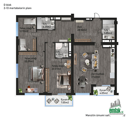 Qanuni 4 otaqlı,