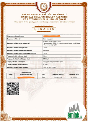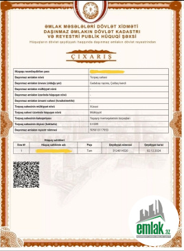 ** Evin və torpaqın sənədi var. Kupşa paket.