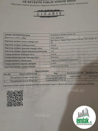 - Əmlakın növüHəyət evi
