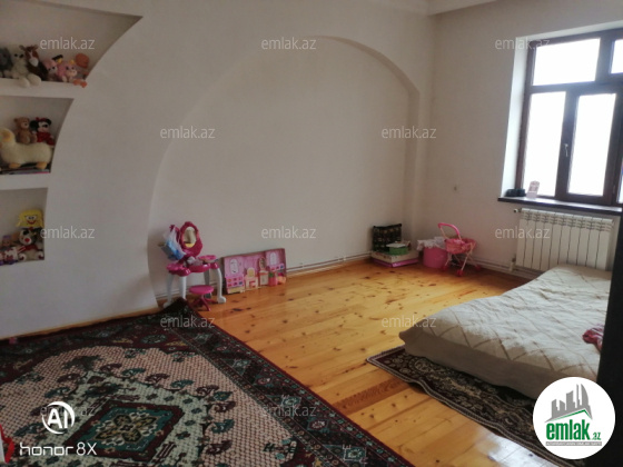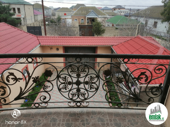 Evi 2013 də özümüz üçün tikdirmişik, 2 mərtəbəlidir, aşağıda 2 yataq otağı sanuzel, böyük qonaq otağı və mətbəx. 2-ci mərtəbədə 3 yataq otağı, sanuzel, balkon və böyük qonaq otağı. su, qaz, işıq daimidir. Ev keyfiyyətli materiallardan tikilib və möhkəmdir. Həyətində besedka və qaraj var. evin arxasında meyvə ağacları əkilmiş torpaq sahəsi var.