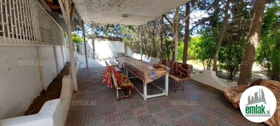 Şam ağaçları var Qaraj basenı bısetkası şu quyusu heyetde hamam tualetı var Denıze 5,10 deq arası var
