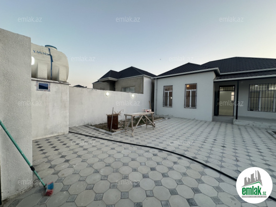 Yeni tikilidir. Su, qaz, isiq ve internet xetti vardir. Her otaqda radiatorlar, hamam tualet isti poldur. Kombi sistemi yigilib. Ev butun əşyalarla birlikde verilir. Qab qacaq, divan, yataq, səkilde gorunen hər sey qalac...