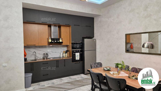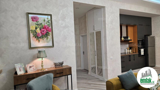 Ümumi tikili sahəsi 95 kv/metr olan ev dəhliz, studio- mətbəx, 2 yataq otağı və ...