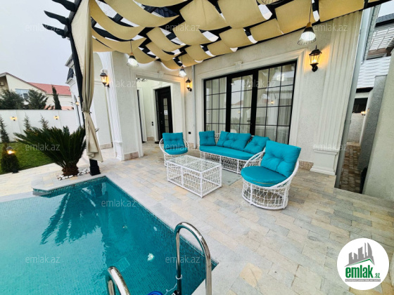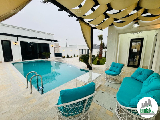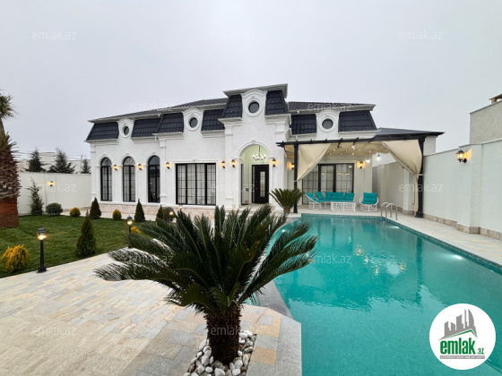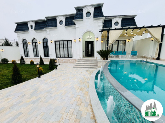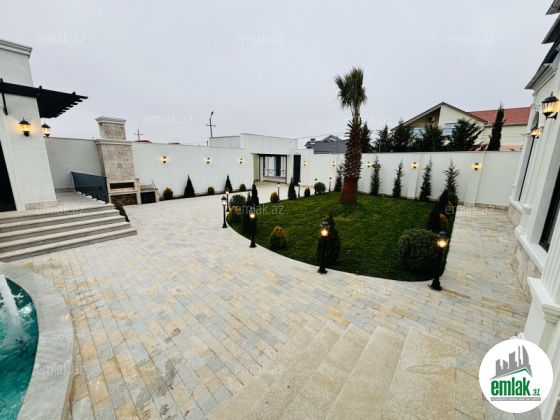 Xezer rayonu Merdekan qes çox prestijni bir ərazidə 6.5 sot torpaq sahesinde 1 mertebeli 255 kvm bag evi satılir. holl ,1 zalı , 4 yataq otagi, 1 metbexi , 3 sanuzeli movcuddur.Heyetinde hovuz fantanli, manqalni ,bisetka .yay qiw metbexti cambalkonlu , sanuzeli ,dekorativ ağaclar , distansiyonu qapisi var. Qazi ,işığı ,suyu daimidir.Sendler tam qaydasındadır.( Kupça)EWYALARI ILE