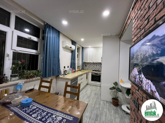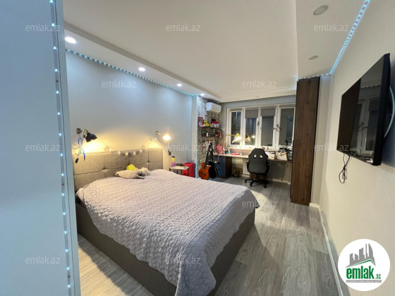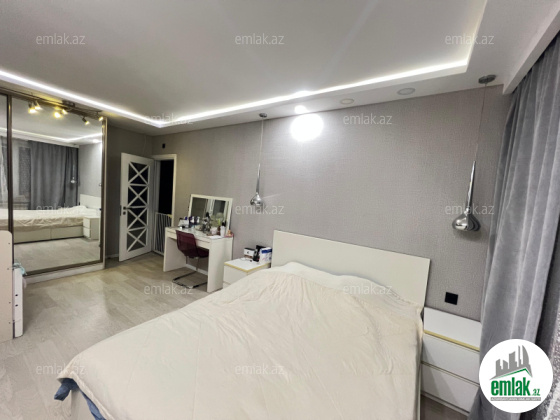 9 mərtəbəli binanın 2 ci mərtəbəsində, Eksperimental “KİYEV” layihəli, qanuni 4 otaqlı (120 k/m) , mənzilin 2 böyük balkonu var(biri mətbəx kimi istifadə olunur), digərin rahat 5 ci otaq etmək olar(14 k/m,). Menzilin qazı, suyu, işığı daimidir, sənədi ÇIXARIŞ(KUPÇA), mənzil tam full təmirlidir, təmirində keyfiyyətli materiallardan istifadə olunub.