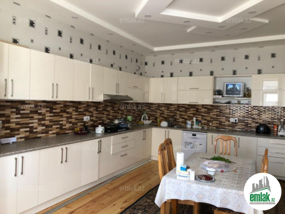 Şexsi tikilmis heyet evidir . Alt ust monalit betondur...7 otagdan ibaretdir . Orta temirli 6 sotun icinde.Otaglar genisdir. Evin icinde heyetin de hamam sanuzel var. Heyetde 10 t su baseyini var. Qaz su isig internet ...