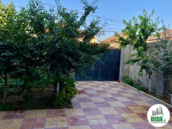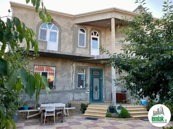 Şexsi tikilmis heyet evidir . Alt ust monalit betondur...7 otagdan ibaretdir . Orta temirli 6 sotun icinde.Otaglar genisdir. Evin icinde heyetin de hamam sanuzel var. Heyetde 10 t su baseyini var. Qaz su isig internet ...