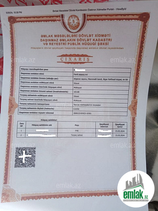 Mərtəbə: 1   Sənədin tipi: Çıxarış (Kupça)