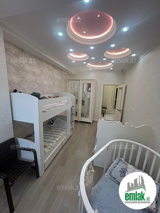 Mənzil qanuni 3 otaqlı, işıqlı, "Full" təmirli, böyük dəhlizi, geniş mətbəxi, 2 sanitar qovşağı və 2 balkonu. Mətbəx, sanitar qovşaqlar və dəhliz isti döşəmə. Bahalı əşyalar qiymətə daxildir. Dairəvi şəhər panoraması.