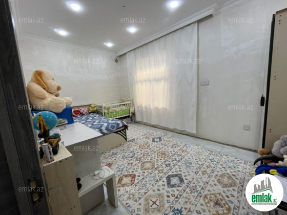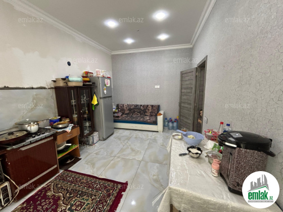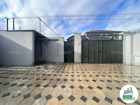 Şexsi tikilmis heyet evidir . Alt ust monalit betondur...7 otagdan ibaretdir . Orta temirli 6 sotun icinde.Otaglar genisdir. Evin icinde heyetin de hamam sanuzel var. Heyetde 10 t su baseyini var. Qaz su isig internet ...