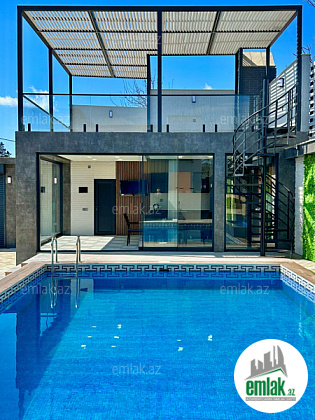 Əşyalarla!! Bakı Bağları şirkəti sizə ekoloji təmiz Mərdəkan qəsəbəsində Bravo supermarketin yanında 9 Sotda 1 mərtəbə 250 kv.m 5 otaqlı super bağ evini təklif edir. Bağ evi zal, mətbəx, 4 yataq otağı, holl və 3 sanuzeldən ibarətdir. Otaqlarda asılmış pərdə və lyüsturları, hündür tavanları, duş kabinalı sanuzeli, mebelli mətbəxi, quraşdırılmış işıqlandırma sistemi var. Ev yüksək zövq və keyfiyyətlə təmir olunub. Su, qaz, işıq daimidir. İstilik sistemi kombidir, isti döşəməsi var. Həyətində geniş filterli hovuzu, cambalkon besedka (tv, mebelli mətbəx ilə), besedka üzərində əla teras hissəsi, yay-qış mətbəxi, yellənçək, stol-stul, manqalxana, söhbətgah, maşın saxlamaq üçün yer, pultla idarə olunan darvaza, yaşıllıq ərazisi, dekorativ ağacları və gülləri, su anbarı, sensorlu gecə işıqları var. 4 mövsüm yaşamaq üçün əlverişlidir. Yolu qapıya kimi asfaltdır. Kupçası (Çıxarışı) var. Start qiyməti 720 000 AZN. Qeyd : Bakı ətrafı qəsəbələrdə, xüsüsən də Mərdəkan, Şüvəlan, Bilgəh, Nardaran və s. ərazilərdə satışda olan digər bağ evləri və villalarımız var. Buyurun bizə müraciət edin.