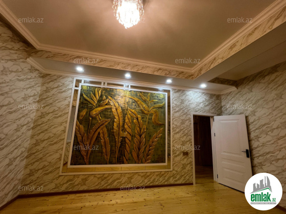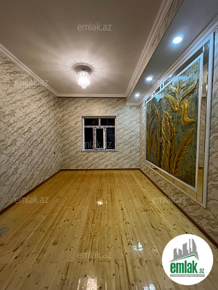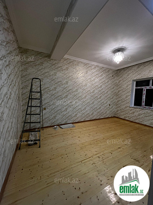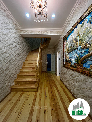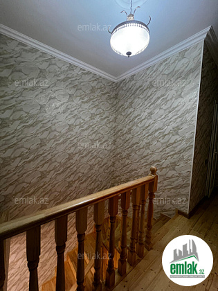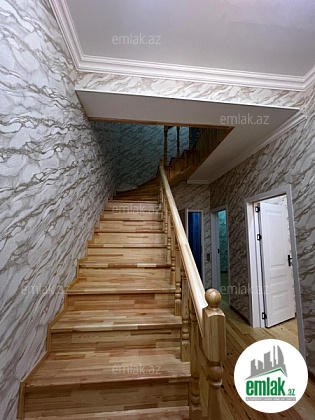 Tam temirli iki mertebe heyet evi temeli var 5 dasin usdunde tikilib. Ev temelden sonacan qosa das ile tikilib. heyeti daw dowemelidi. 1ci merhebe( 1 zal, sanitar qovsaq, metbex, kolidor) dan ibaretdir. 2ci mertebe( 3 otaq ve sanitar qovsaq) dan ibaretdir. Ev zovqlu, keyfiyyetli oboy ve kafel metlaxdan isdifade olunaraq temir olunub.