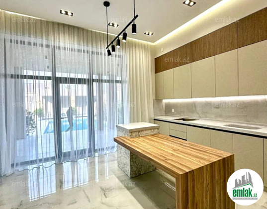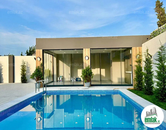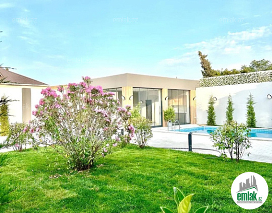 Şüvəlan qəsəbəsi. çox prestijli bir məhəllədə El və 3 mərtəbə restoranlarına yaxın 5 sotda modern üslubda çox keyfiyyetle inşa edilmiş bağ evi satılır, 200 kv.m, qonaq otağı, mətbəx,3 yataq ve 3 san/qovșağı var, istilik sistemi kombi, isti döşemeli,manqal, filterli hovuz, içmeli su xetti, ișıq, qaz xettleri, yolu asfalt örtüklüdür.Sənədlər qaydasındadır.