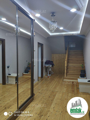 Tam təmirli 2 mərtəbə, cüt daş, 5 otaq, 1 mətbəx, 2 sanitar qovşaq, qaz, su, işıq, 2 sanzuel kombi və hər tərəfdən kamera ilə təchiz olunub.