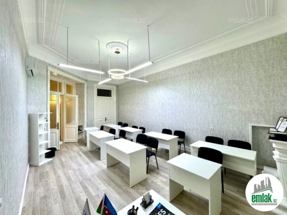 Metroya 5 adddımlıq məsafədə yerləşir. Ofisin ümumi sahəsi - 145kv.m-dir (2 zal - hərəsi 30-40kv.m, 2 ayrıca otaq hərəsi hərəsi 16-20 kv.m, antresolda 10 kvm-lik otaq, s/q və geniş mətbəx).