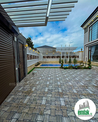 Su, işıq və qaz var. Bütün otaqlar isti döşəmədir. Həyətində geniş hovuzu, manqalxana, yaşıllıq ərazisi, dekorativ və meyvə ağacları,sanitar qovşaq sensorlu gecə işıqları var. 4 mövsüm yaşamaq üçün əlverişlidir. Yolu asfaltdır.