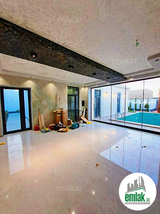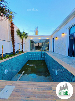 Həyətində filterli hovuzu, yay-qış mətbəxi, sanitar qovşağı, maşın saxlamaq üçün sahəsi, yaşıllıq ərazisi və müxtəlif növdə dekorativ ağacları var.