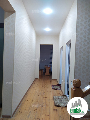 yoldan 100 metr arali,6 sot torpaqda tikilmiş,6 daş kürsülü,120 kv.m.4 otaqlı,əla təmirli ev.Ev əşyalarla bir yerdə satılir(soyuducu,paltaryuyan maşın,...