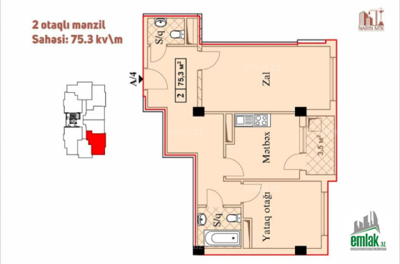 - Sahə75 m2
