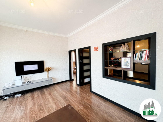 Ümumi tikili sahəsi 95 kv/metr olan ev dəhliz, studio- mətbəx, 2 yataq otağı və ...