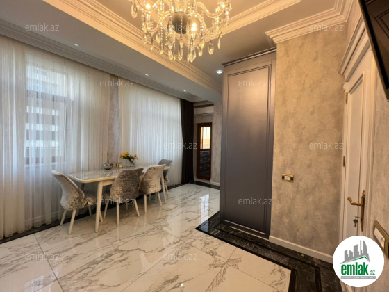 Qanuni 3 otaq.Menzil super temirlidir.Temir ve mebeller taninmish shirket terefinden temin olunub.Temir zamani bahali avadanliqlardan istifade olunub.Istilik sistemi kommbi,isti pol.Her otaqda ve metbexde kondisioner var.Iki balkon,her bir balkon temirli ve cam balkonlu.Blokda 3 eded Sharp markali liftler var.Su,qaz,isiq daimi.Menzil eshyalari ilebirlikde satilir.
