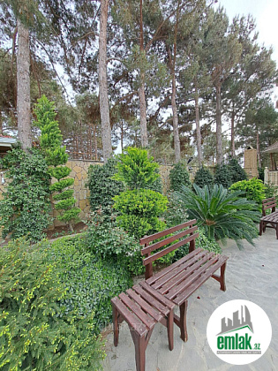 Həyətində filterli hovuzu, manqalı, söhbətgahı, maşın saxlamaq üçün sahəsi, geniş yaşıllıq ərazisi və müxtəlif növdə dekorativ ağacları var.