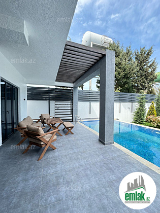 Mərdəkan Qoşa qala restaranina yaxin 5.5 sot torpaq sahəsində inşa olunmuş 2 mərtəbəli bağ evi satılır. Ümumi sahəsi 250 m² olan evin geniş dəhlizi, qonaq otağı, 5 yataq otağı, sanitar qovşağı (hər mərtəbədə), mətbəxi və açıq eyvan mövcuddur. Evin istilik sistemi kombidir. Hovuzun filtrasiyası və isitmə sistemi. Video müşahidə sistemi. Manqalı, sanitar qovşağı (heyetde), yaşıllıq ərazisi var. Sənədləri tam qaydasındadır, texniki pasport, çıxarışı (kupça) var.