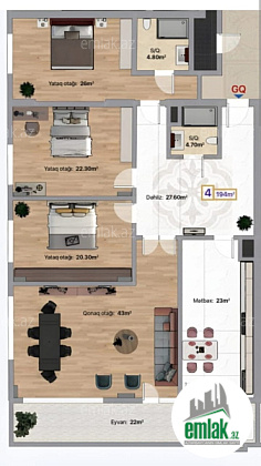 Eksklüziv olaraq Ağ şəhərdə Knightbridge residence`də Qanuni 4 otaqlı, Yelçəkən (Skvaznoy) 1 qardirob 2 sanuzel və sanitar qovşaq 3 yataq otağı mövcuddur. Qeyd edək ki, yelçəkən mənzillər bu kompleksdə az ra...