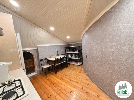Salam . Ev AAAF Park yaşayış kompleksində yerləşir , 7 mərtəbəli (lift var) binanın , axırıncı mərtəbəsidir (mansard tipli) . Sıfırdan özüm təmir etmişəm , hər bir materialın ən keyfiyyətlisinə üstünlük verilib , mənzil tam səs və temperatur izolyasiyası olunub . Sənədlə ev 2 otaq sahəsi 87kv qeyd olunub ama günbəz iki yerə bölünüb elavə otaq olub və sahəsi hal hazırda 112kv təşkil edir , pilləkan cövüz (ən dözümlü)ağacından yığılıb . Zalın qapı və pencərəsi daha dözümlü və daha görünüşcə yaxşısı ilə əvəz olunub . Uzun , yumru və mənzərəli balkonu var . Binada qaz var , ama evə çəkdirməmişəm , ehtiyac olarsa 2 gün ərzində çəkdirmək mümkündür .